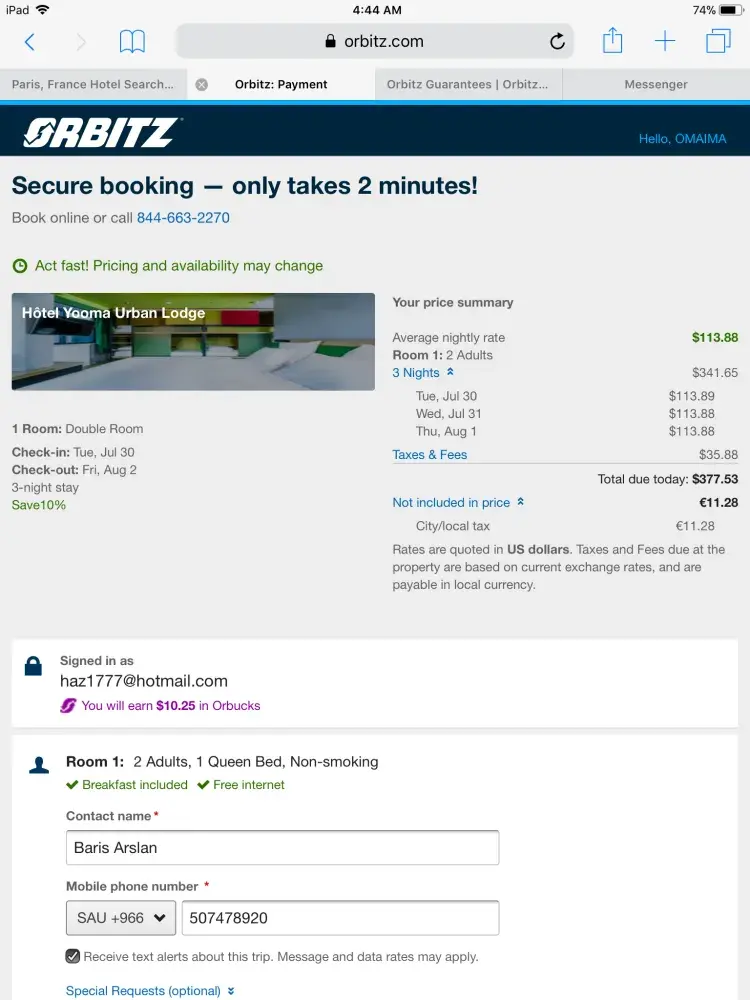 Orbitz reference orbitz itin [protected] Req-E-[protected] emails correspondence since April 22nd 2019