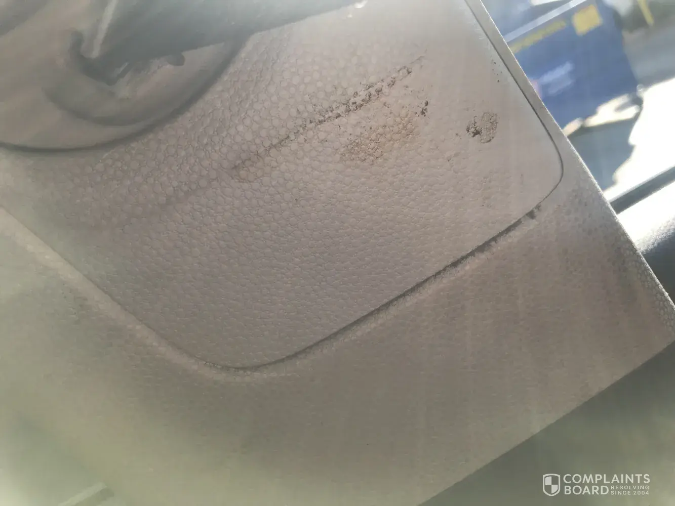The interior of the vehicle was even worse. The glove box was falling out, there were multiple burn holes on the seats, Had a very strong cigarette odor, the headliner and interior panels were splattered with brown stuff!