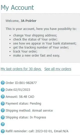 Made order # 2 with what, I thought was a different supplier. I didn't realize until after I paid that Order-CS, com was the company behind the facade of the "new supplier". I ordered using the "trackable" service this time. After about a month of waiting, I called Order-CS.com and requested a refund. I have yet to see it.