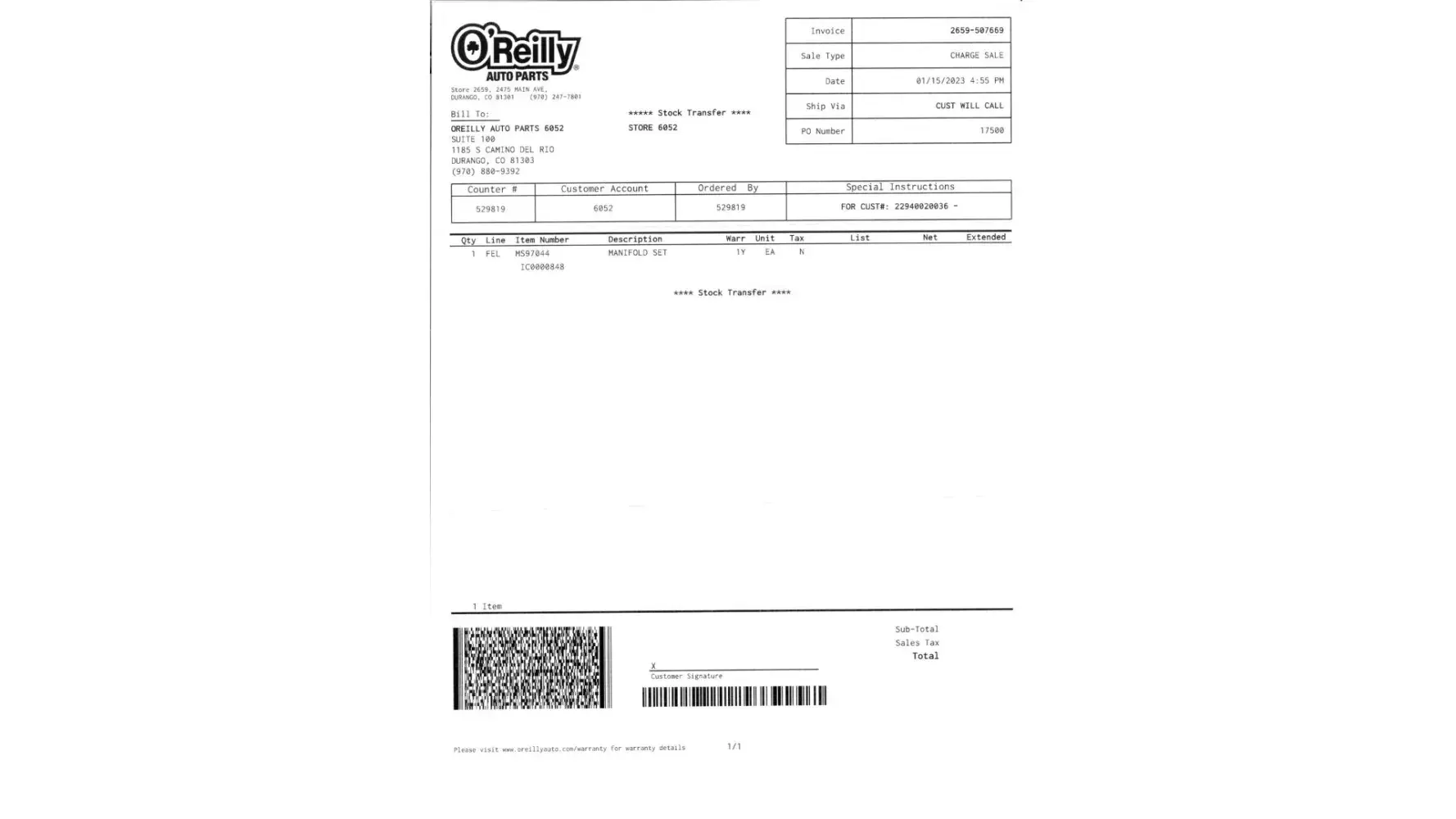 Ordered part, was contacted by phone to let me know the part was not in stock even though the part was in stock per the computer at that store. Said the part would be available at the store the next day. Arrived to find that the item did not arrive from the other store in Farmington, though was available at the other store in Durango, CO. Used my $5.00 off coupon for the gasket (item). The clerk (529819) provided my money back to my card and said that I could not use the $5.00 coupon for the next purchase. He then ordered the gasket from the other store in Durango, made a "will call" slip, charged the full amount less a 10% courtesy discount and sent me to the other Durango store to pick up the item. So, I lost my $5.00 coupon, had to do the legwork for this facility AND had to listen to foul language during this whole process by the same clerk as he launched "f-bombs" and "GD" while on the phone and using the computer to try to remedy the issue.