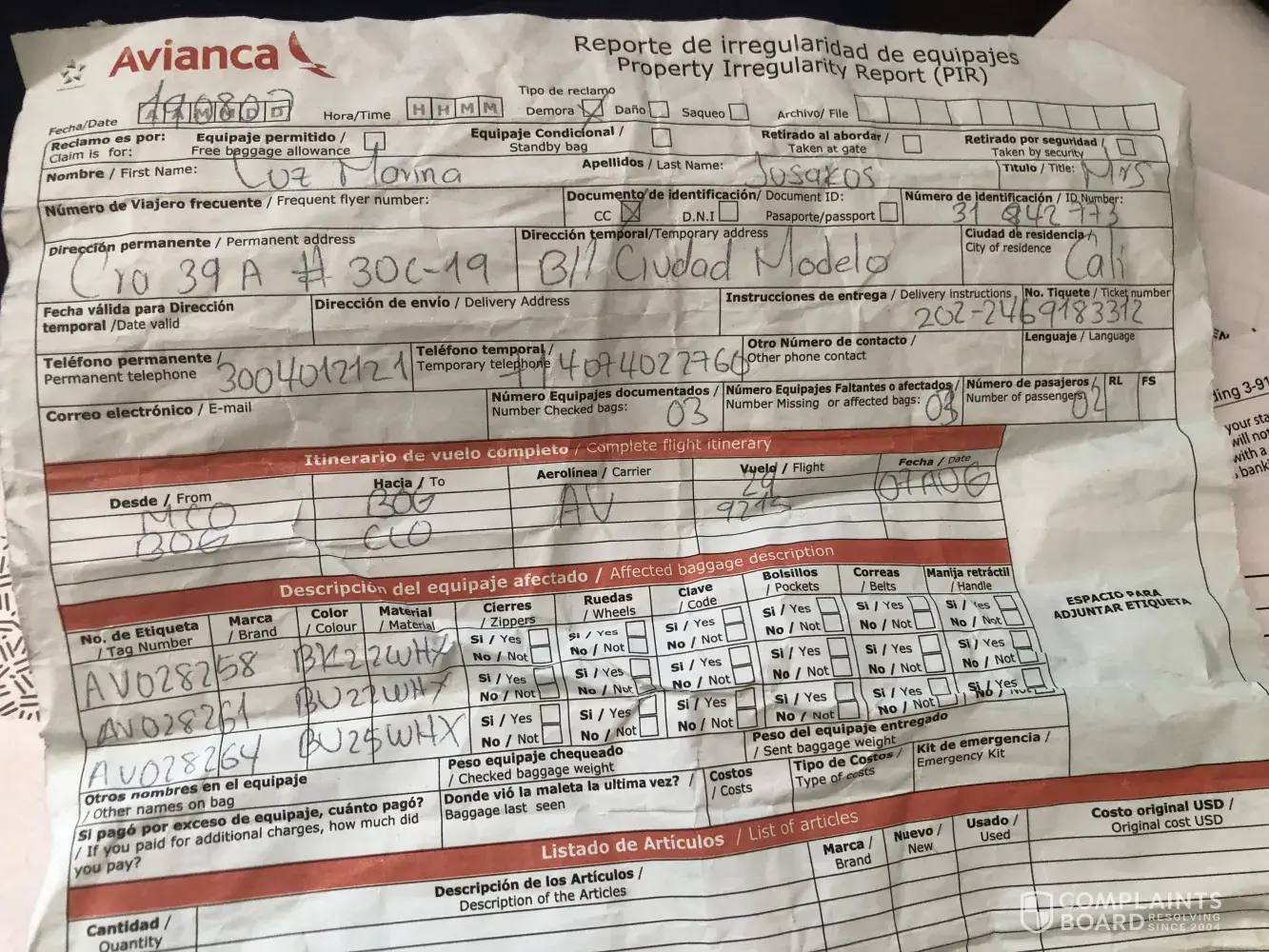the Luggage didn't come that day, Avianca Give me a Receipt for the 3 Luggage that I had,