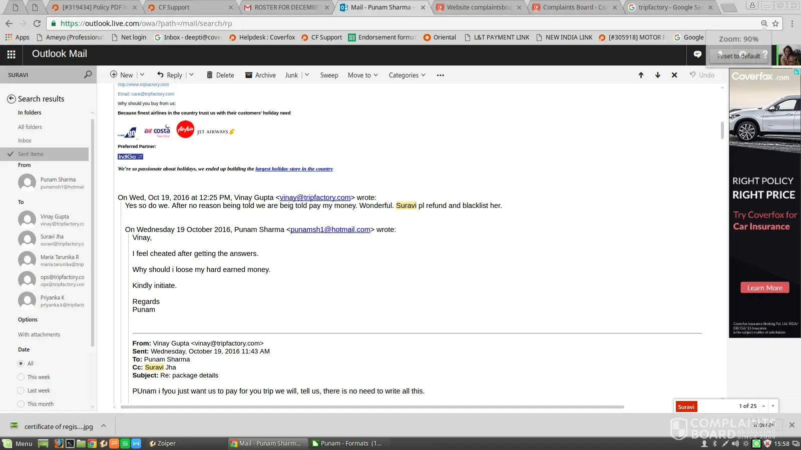 I had mailed them about refund on [protected]@tripfactory.com, [protected]@tripfactory.com, [protected]@tripfactory.com, anusha. [protected]@tripfactory.com