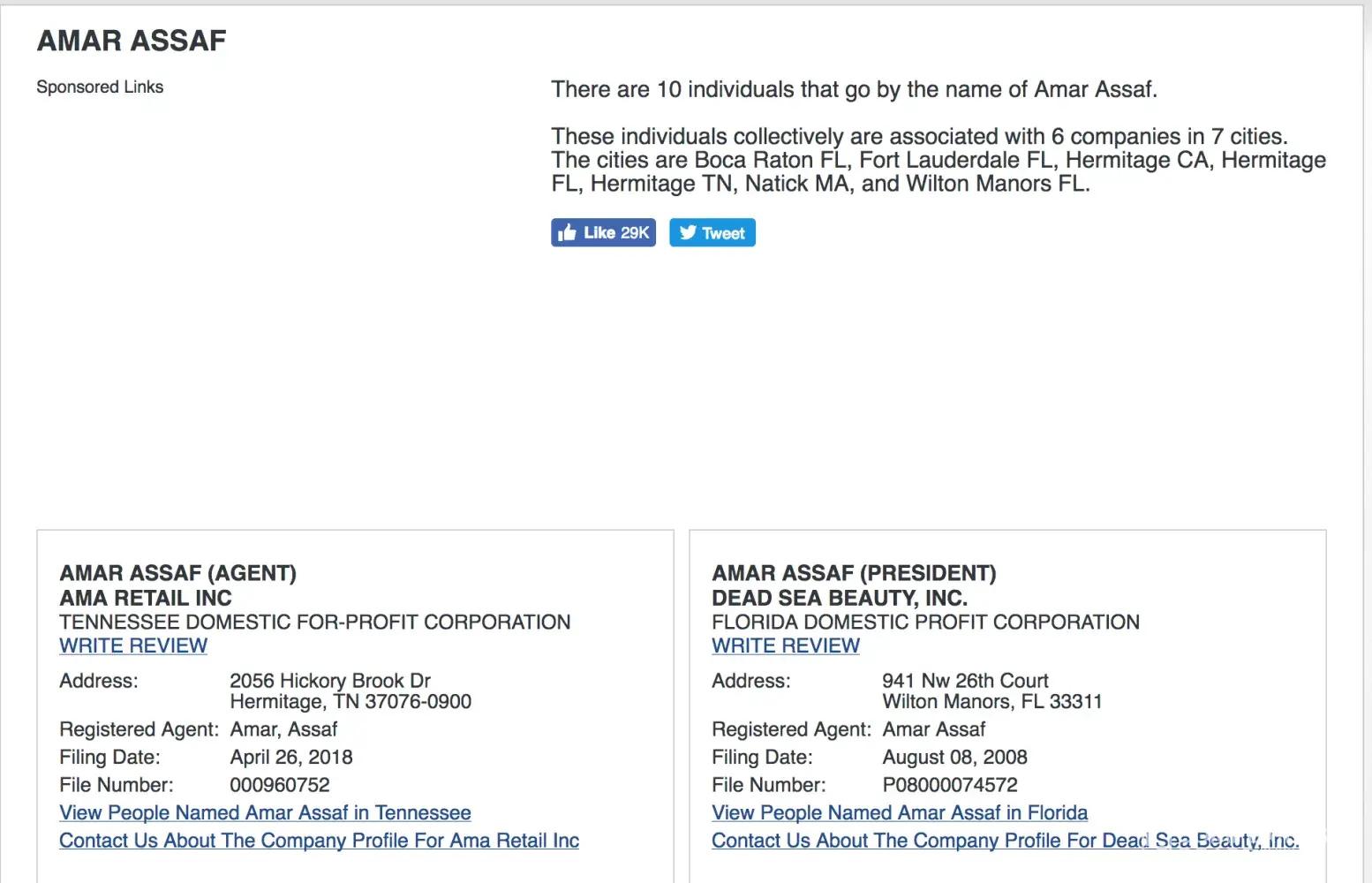 I just posted one screenshot from Bizapedia. There are many more that reveal the depth of Assaf Amar's involvement in Dead Sea cosmetic scams.