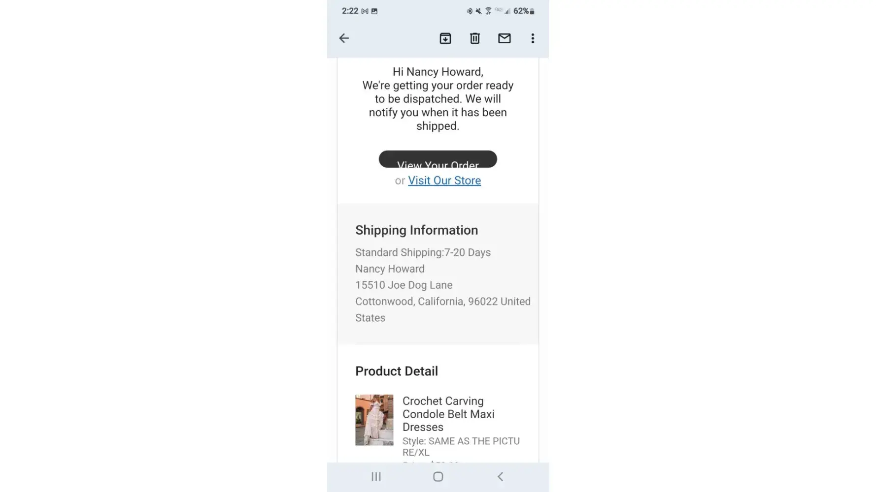 The dress I ordered