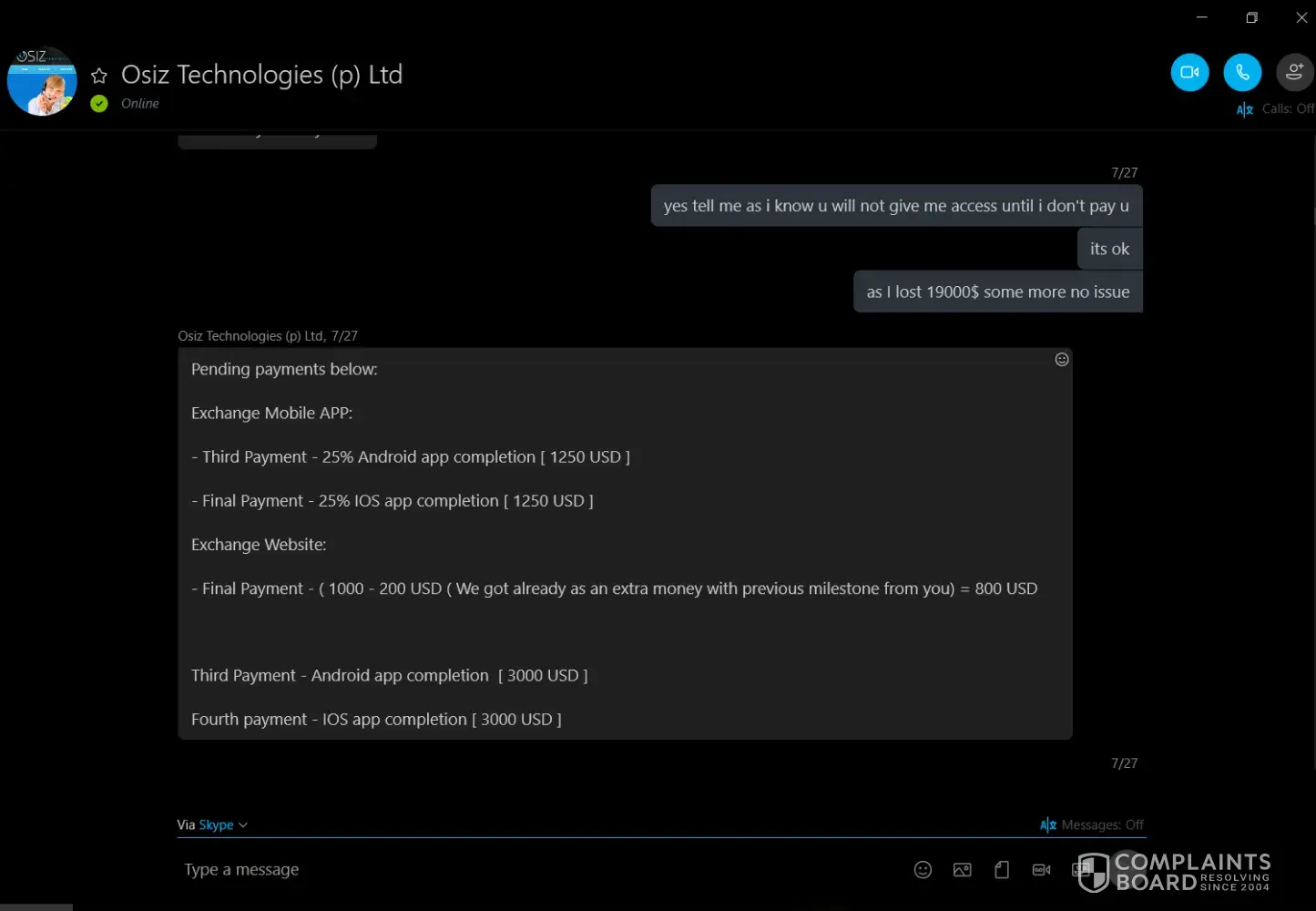 They said can develop crypto exchange & MLM platform for me I asked so many times about it and they said they are specialized in it and they gave me total budget around $22000 in maximum 90 days payment in Bitcoin/ PayPal I paid according to