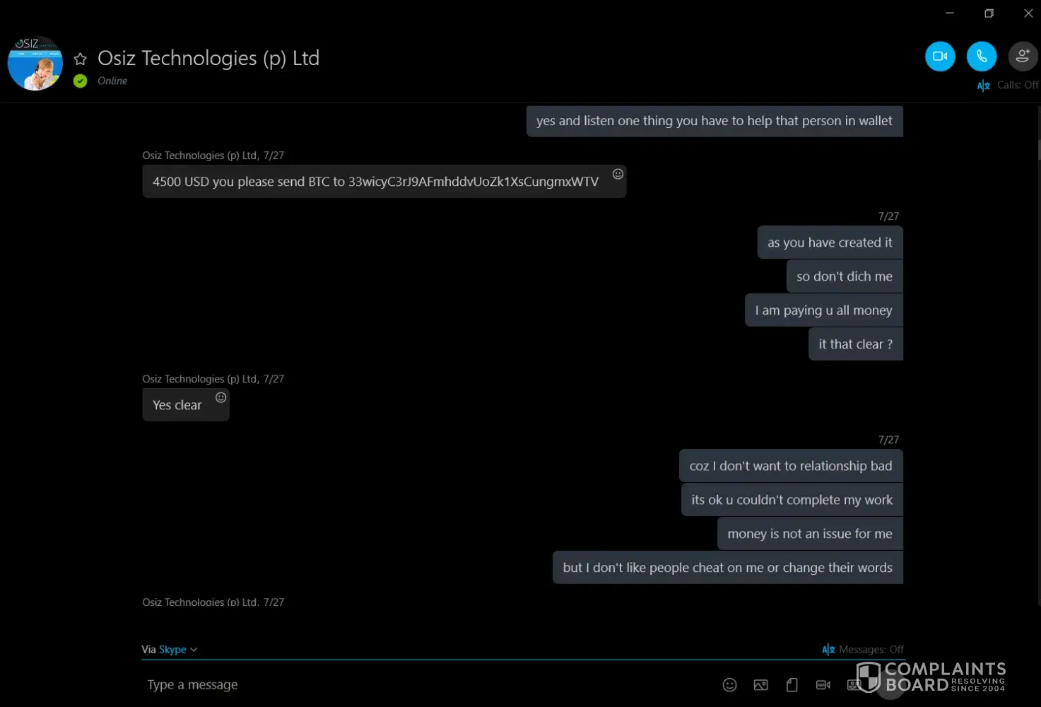 Hello, my name is Marjorie and i was scammed by OSIZ TECHNOLOGIES Pvt. Ltd (India).