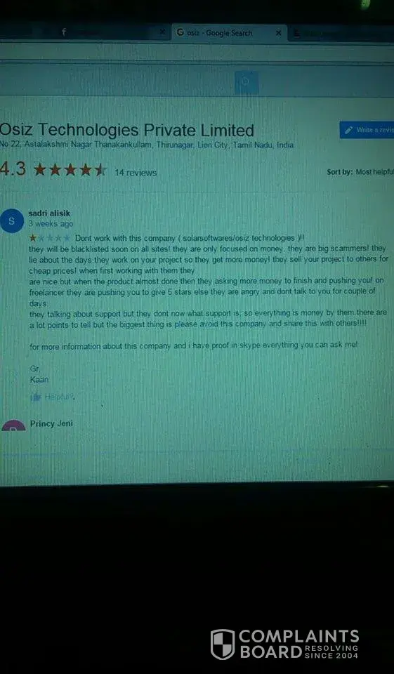 - While Osiz Technologies has a high level of trust, our investigation has revealed that the company's complaint resolution process is inadequate and ineffective. As a result, only 16% of 6 complaints are resolved. The support team may have poor customer service skills, lack of training, or not be well-equipped to handle customer complaints.