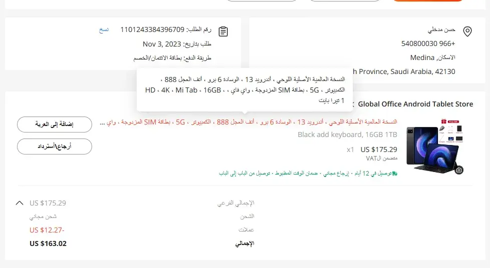I purchased a tablet from a seller called Global Office Android Tablet Store On the website www.aliexpress.com. The order number is the order number: [protected] Order dated: Nov 3, 2023 payment method: Credit/debit card Store number [protected] This store has been open for Oct 6, 2023 Company name: Shenzhen Linghangxuntong Tech Co., Ltd. VAT...