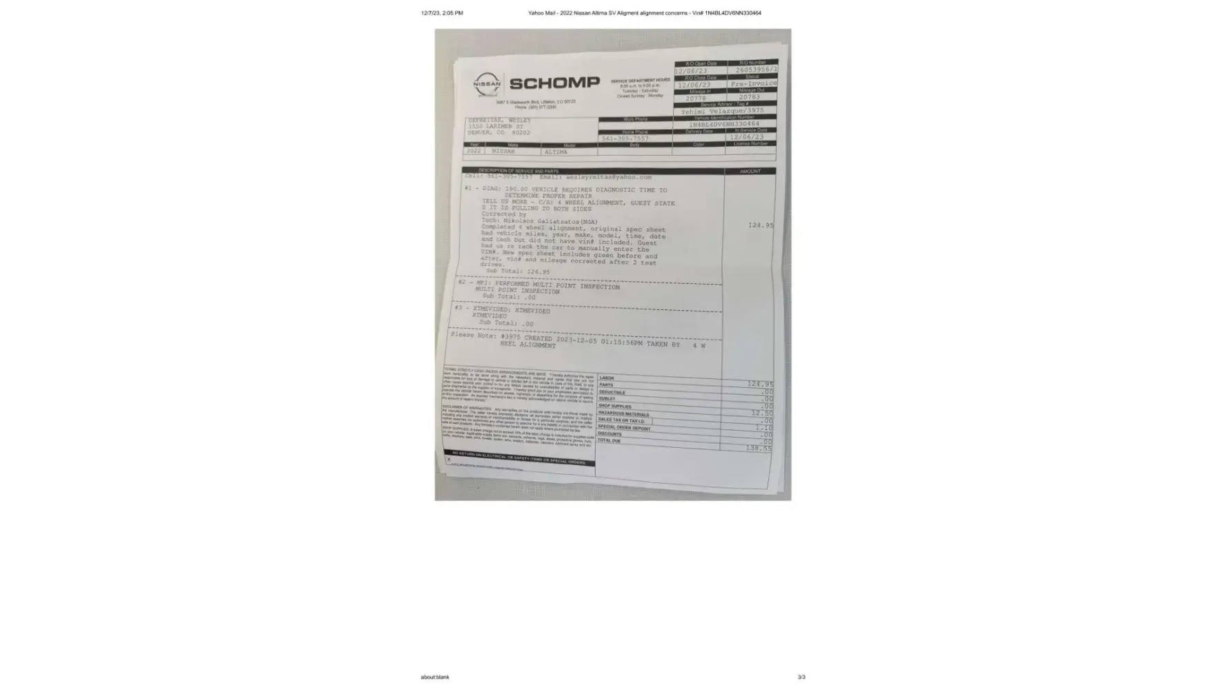Nissan of North America refuses to provide me with a solution regarding my vehicle misalignment. I have taken my vehicle to the Nissan dealer more than 3 times to have the alignment issue resolved. My vehicle still under Nissan factory warranty. Misalignment can put undue stress on a vehicle’s suspension. This poses a risk of damaging suspension...