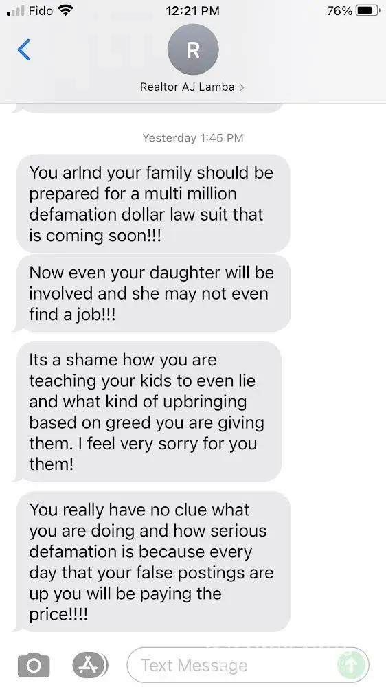 Read full complaintWhitehill Realty Int. Inc. & AJ Lamba Academy Inc. - Threatening me and my family