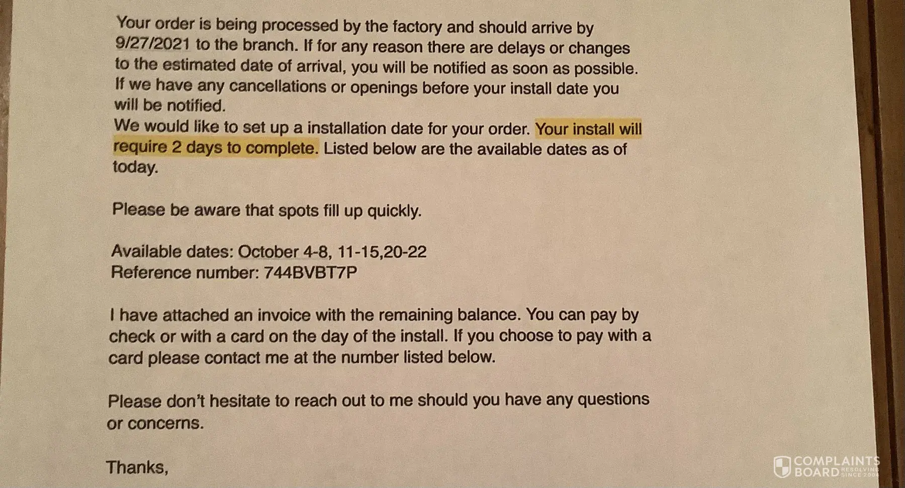 Read full complaintPella Corporate Headquarters - Product was cancelled seven days before arrival to the branch location.