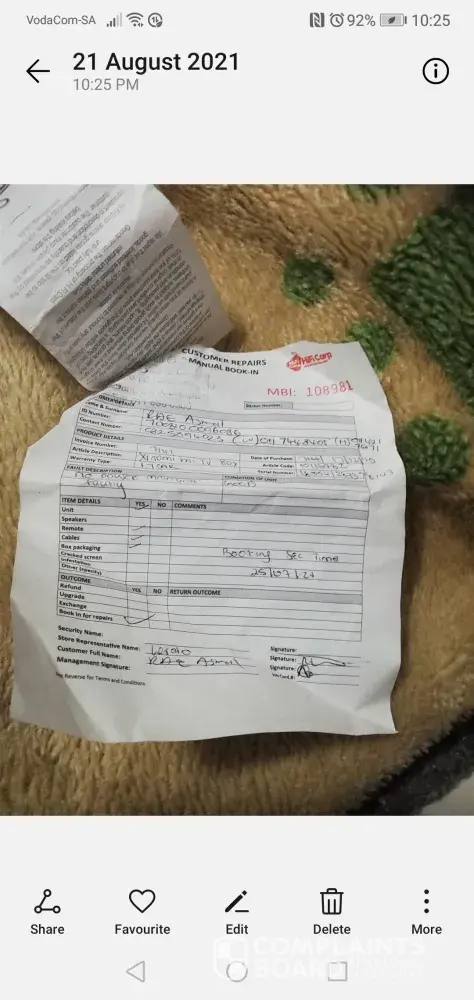 Read full complaintHiFi Corp North Rand Rd and Carnival Mall - Xiaomi tv box purchased in December 2020