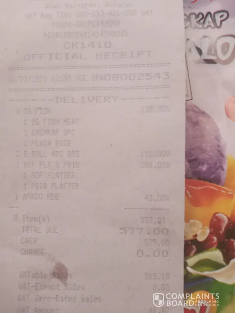 Read full complaintBalagtas Bayan Chowking - Price / chicharap