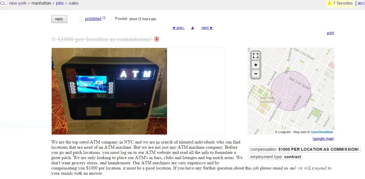 Michael Aingorn of FTF Inc., an ATM company, has numerous ads on Craigslist stating that he pays a $1, 000 referral fee to anyone who refers him to a bar, club, or lounge (in the New York City area) in a good location that wants a free ATM. This is a LIE. After you give him the location and the ATM is installed, HE DOES NOT PAY YOU. In fact he is rude...