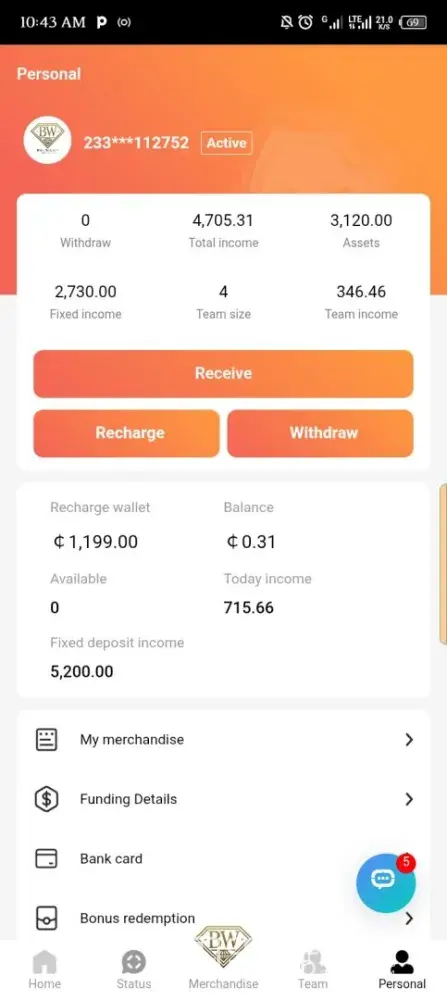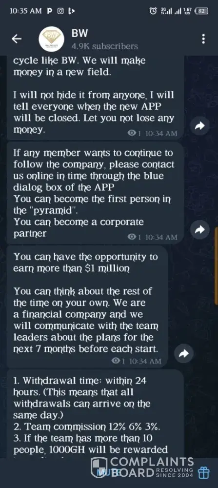 On 11th May, 2025, someone introduced an investment site with the name Bill Willet Jewelry (BW Jewelry). I made a purchase of two of their products worth ¢3000. I issued a withdrawal twice within the week and didn't receive the money. On 16th May, I was asked to make a deposit of ¢1199 to verify my account because they noticed fake accounts in the...