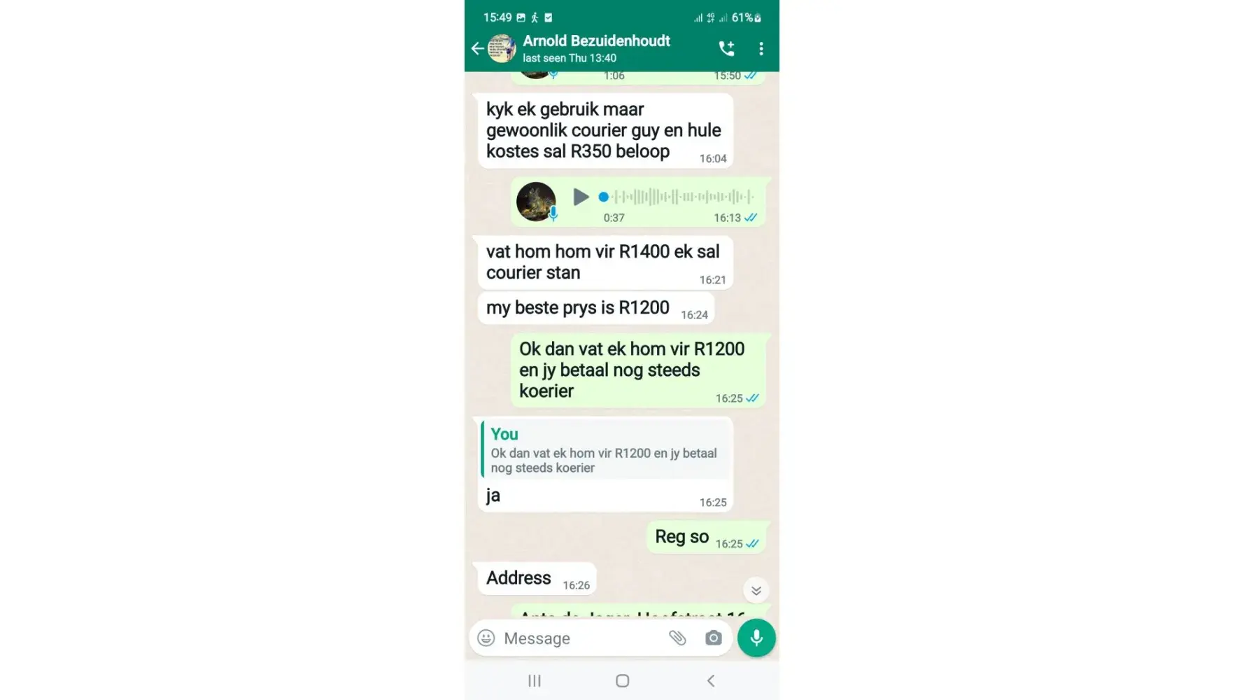 Read full complaintArnold (Arrie) Bezuidenhout Transportation Services Kathu - Buying trojan exercise bike