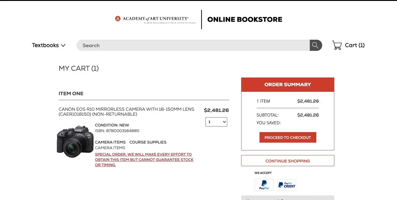 I ordered a Canon Es R10 mirrorless camera with 18- 150mm Lens{ CAER1018150 on 2/8/2023 along with other items purchased through Veterans affairs and got a notification on 2/10/2023that my items were confirmed and shipped on my phone and I logged in and saw that there was another camera was sent , A canon EOS R Mirrorless camera ( CAERPB) witch was not in...
