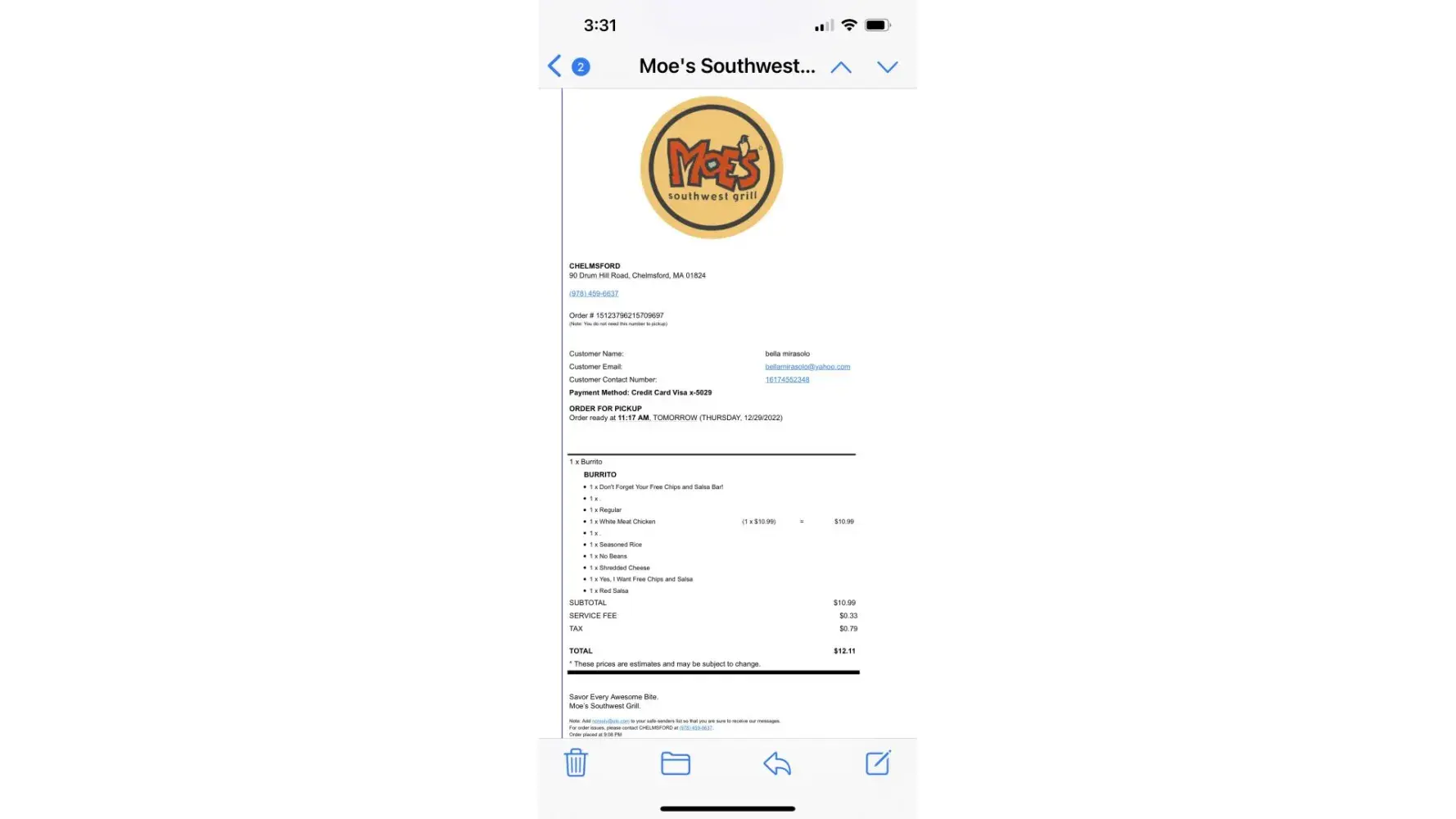 Read full complaintMoe's Chelmsford MA - Place order on moe's app but store was closed to pickup