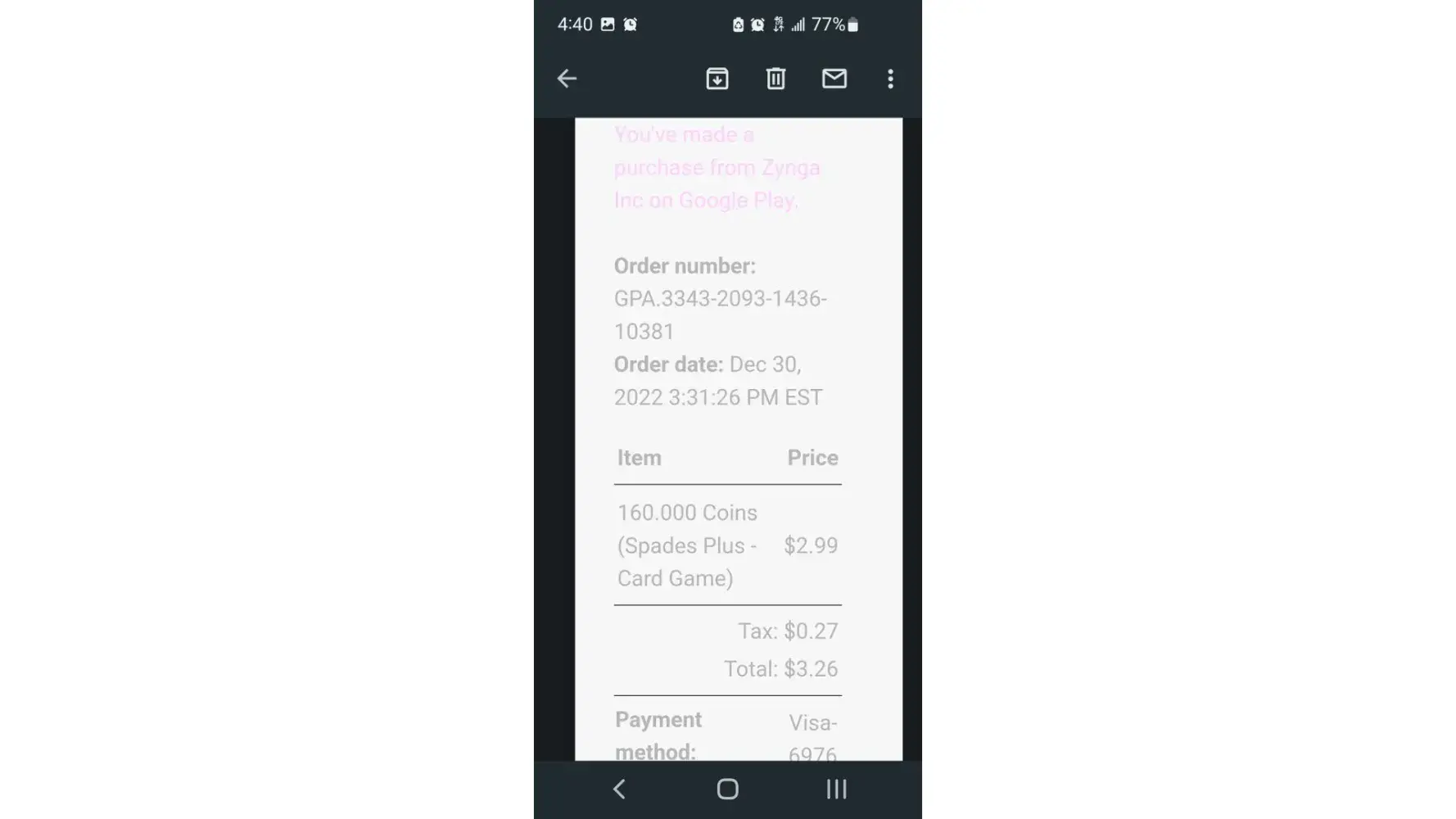 I received a pop-up sale offer of additional coins if I purchased 160,000 coins for 2.99. I don't recall the amount. But it was significantly higher. When I purchased the coins, on two occasions the receipt indicated that only 160,000 coins. I notified Spades Plus customer service by email and the support staff inaccurately and falsely claimed, that I...