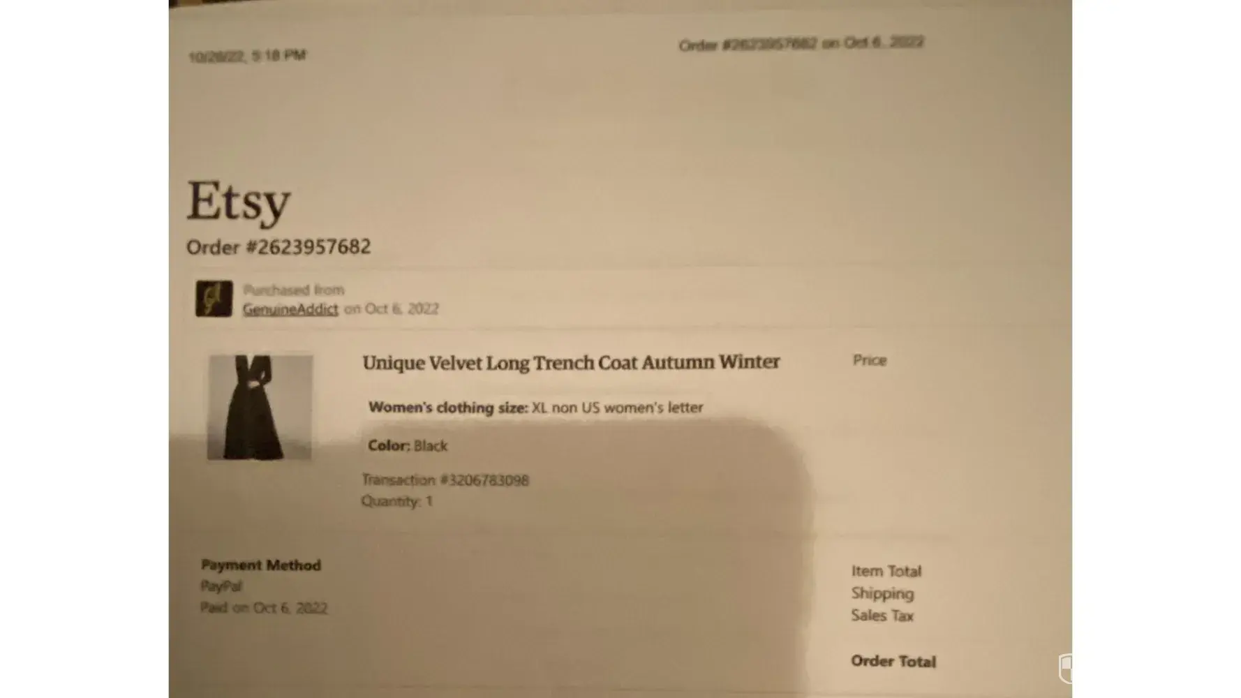 Genuine Addict - China - Order# [protected] cost $115.08 blk coat xl trans # [protected]/ order#[protected] cost: $155.08 blk coat 2xl trans# [protected]