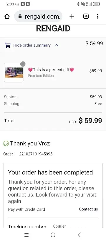 Ordered 10/31/2022 from rengaid.com for a hand held laser engraver for $59.99 USD. Order #[protected] and sent from Project International Department, West Gate, Post Office Central, Bureau No. 138, Wucheng, Taiyuan City, TAI Yuan, SHANXI 030006 China and through Courier HM Warehousing Distribution Limited, China. Item received 11/23/2022 Scam