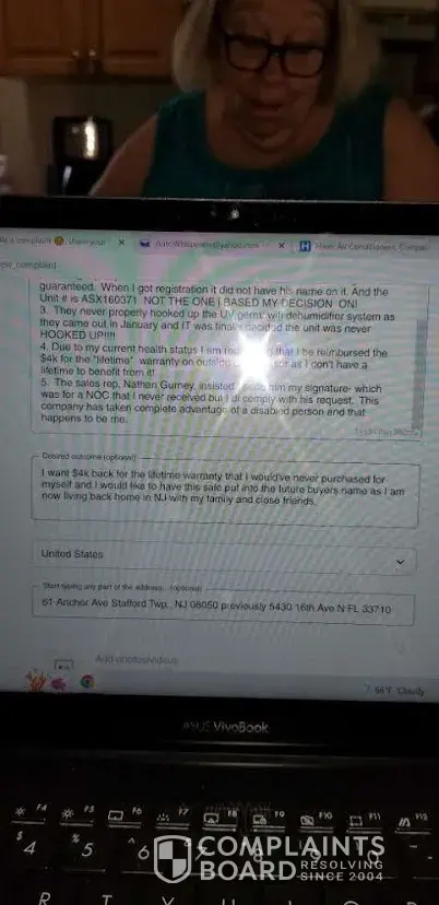 Hello! I was just hung on after a 30 minute conversation with someone who wasn't able to even assist me with this matter... I need to speak to someone regarding my HVAC purchase please. 1. The $10K purchase which included lifetime warranty on outside compressor was to be in both my name and my nephews name as I am very sick and the rep Nathan Gurney of...
