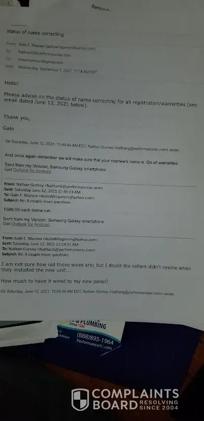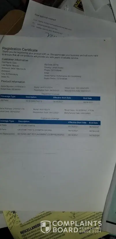 Read full complaint and 1 commentPerformance Air Conditioning - Amana # ascz0160361 & a/h # avptc49d14