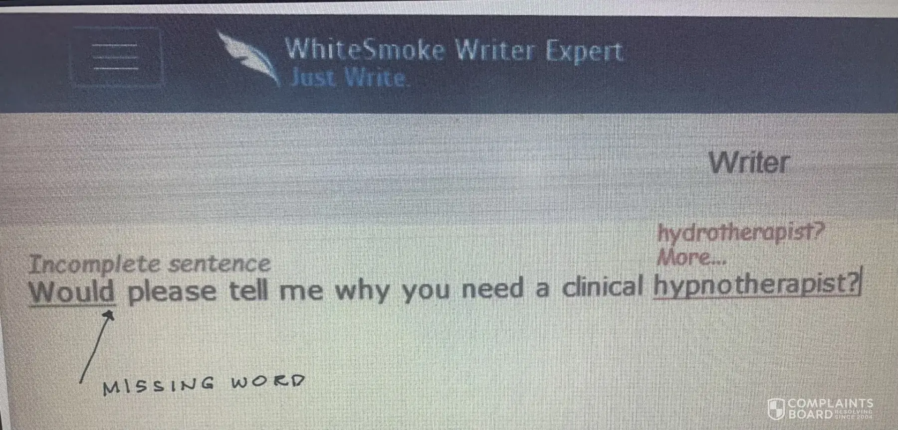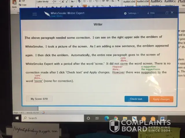 Read full complaintWhiteSmoke Gramarly - Still behind in vocabulary