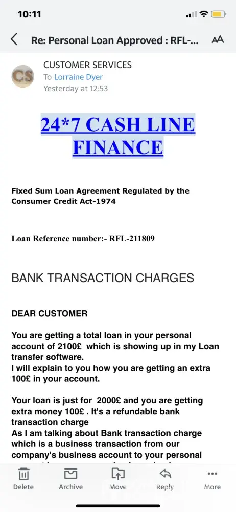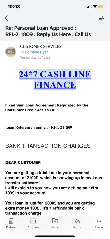 Please do not been taken in by this scam. They ask for a £50 steam card to be sent to cover administrative fees. Once they have got that they start asking for £100 to cover the charges for a CHAPS payment. It's a complete scam. They are targeting people with poor credit ratings. They can't be able to get away with this. I'm now £50 out of pocket and have...