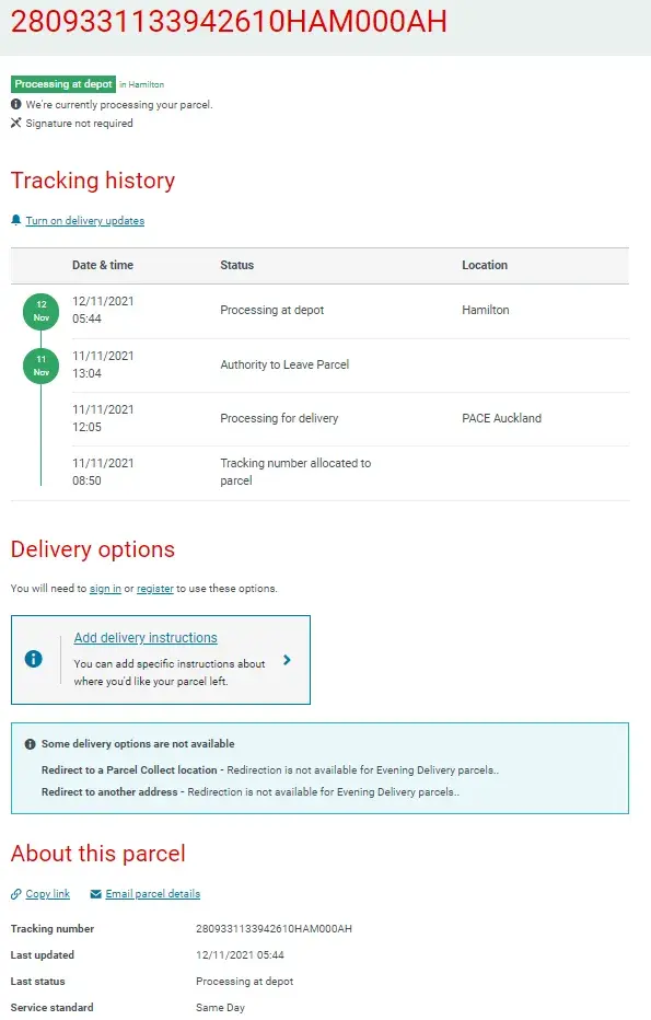 Ordered from Mighty Ape NZ! They are awesome, however their postal service New Zealand Post suck at delivering Same Day. Look at the screenshot for why this complaint is here. They failed to deliver my item to me and the Freight Investigator Maxine never responds to emails at all. However, they can deliver a parcel from Dick Smith that was send in November.