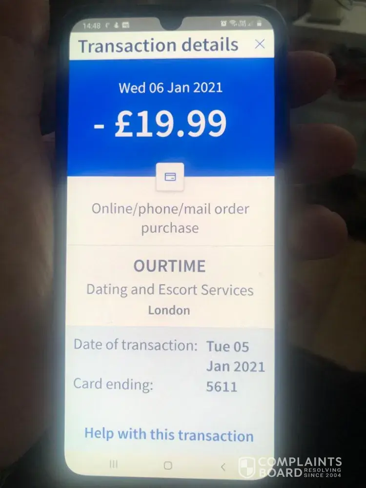 I was checking My bank account today to make sure I have enough money to cover out goings for Friday 12th. Only to find that Ourtime had taken £34.98 this morning 11/03/2021.