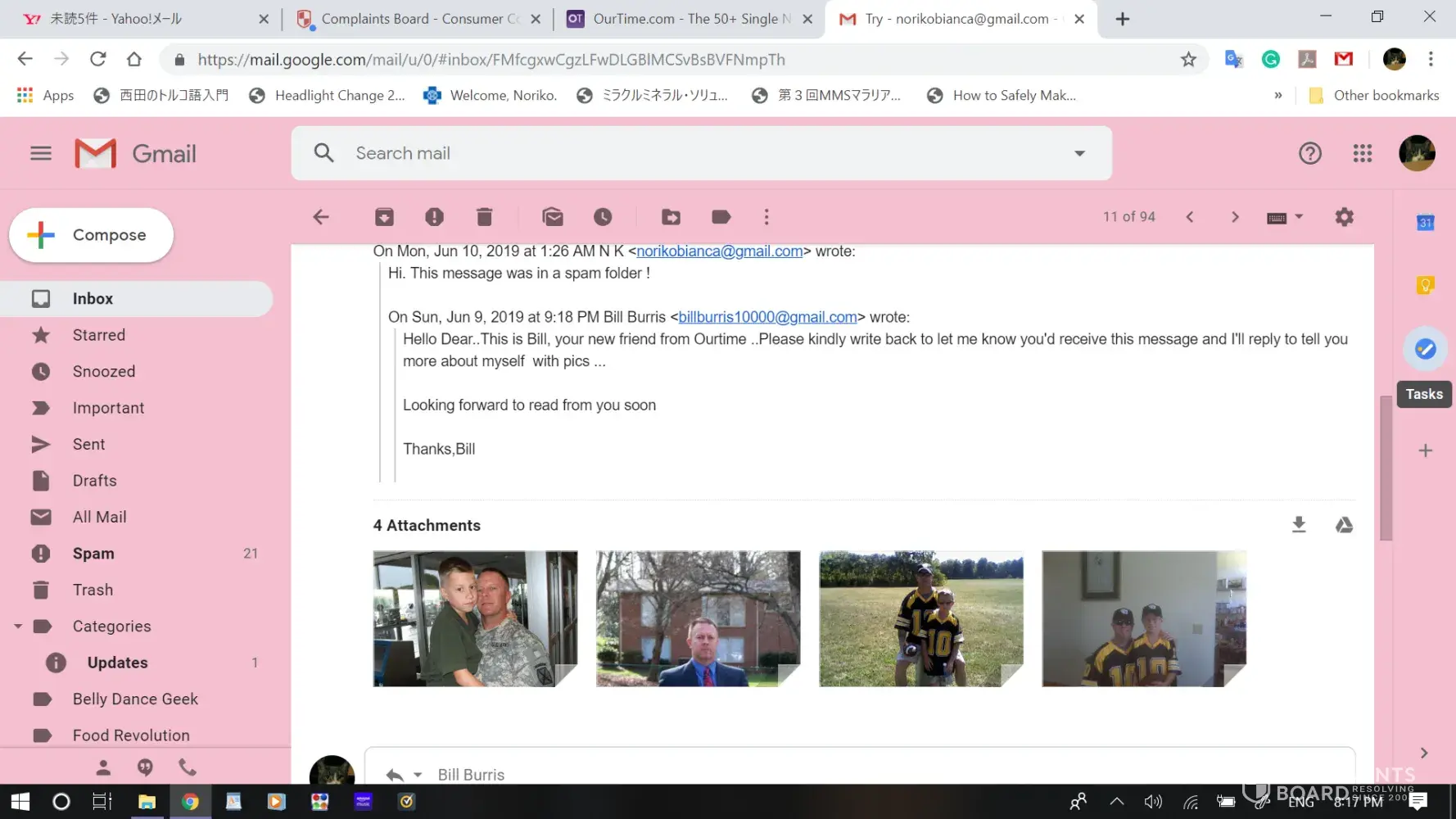 I am convinced that this individual who has been blocked from the other email addresses is the same individual who tried to "cat fish" me in 2018.