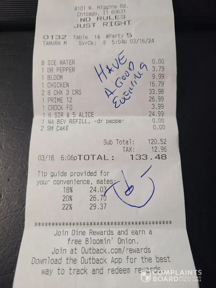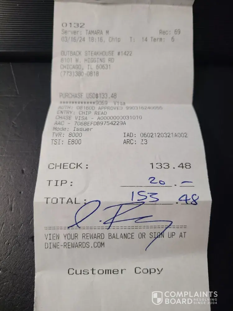 Read full review491 Outback Steakhouse Complaints