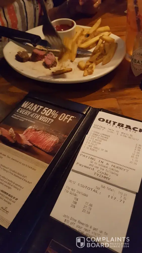 Overall, I am quite disappointed and felt I had no options in this situation. But I did feel I was taken advantage of by the manager. I will not be back to this outback unless I know this manager is no longer at that location.