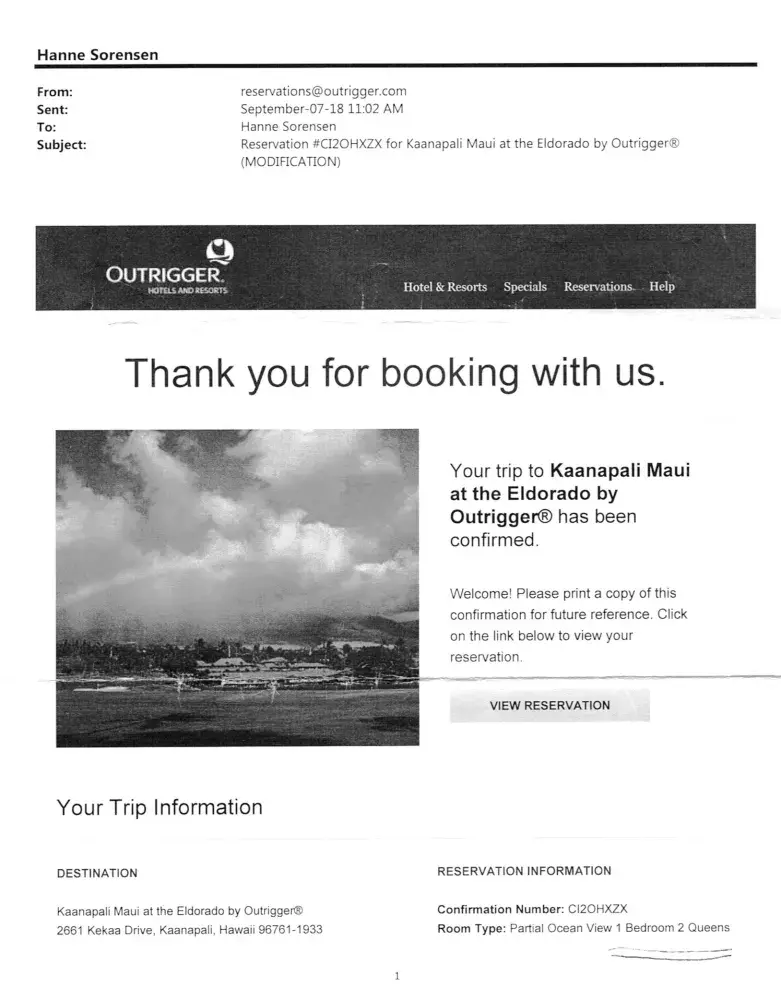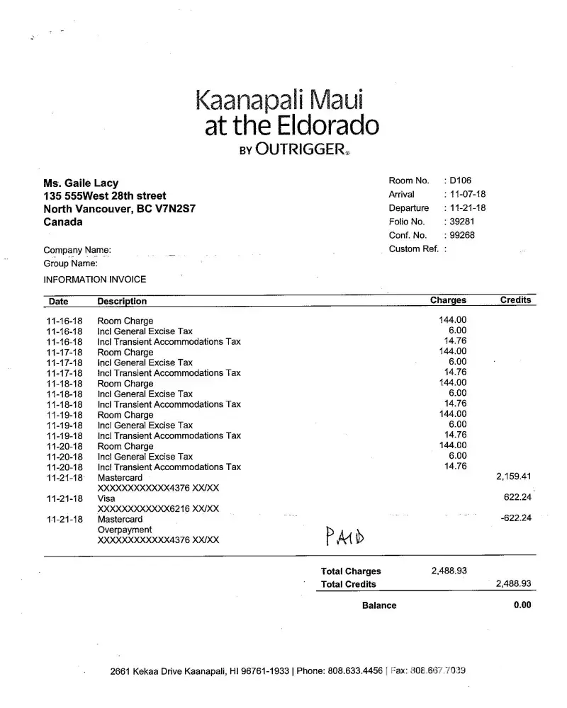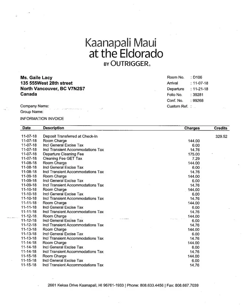 Arrived Nov 7/18 11:55 pm to Nov 21/18 to Kaanapali Maui Eldorado, Lahaina, HI