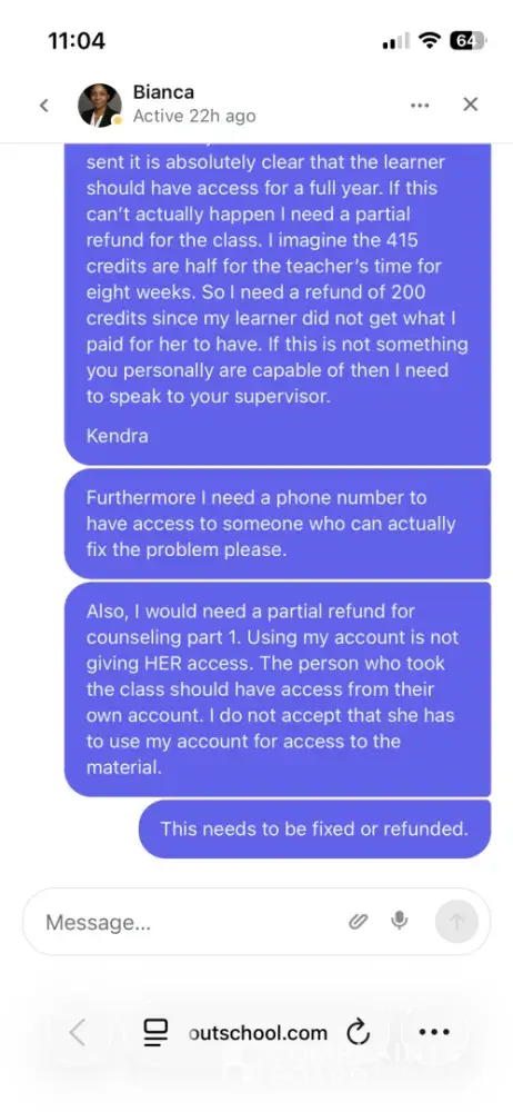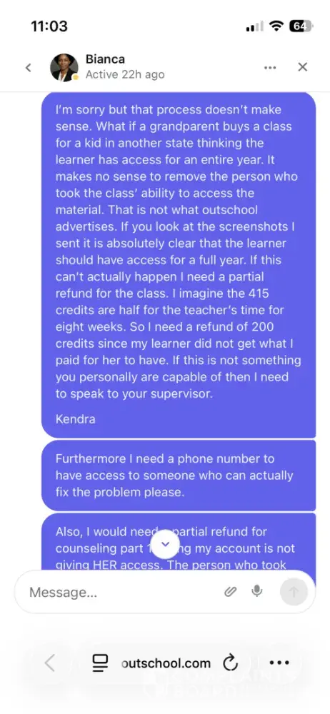 I gotta say, I'm not impressed with Outschool. I mean, sure, they got some cool classes and stuff, but when it comes down to it, they don't really care about your kid. All they care about is getting your money. And if they mess up, they don't wanna fix it. They just wanna sweep it under the rug and pretend like nothing happened.