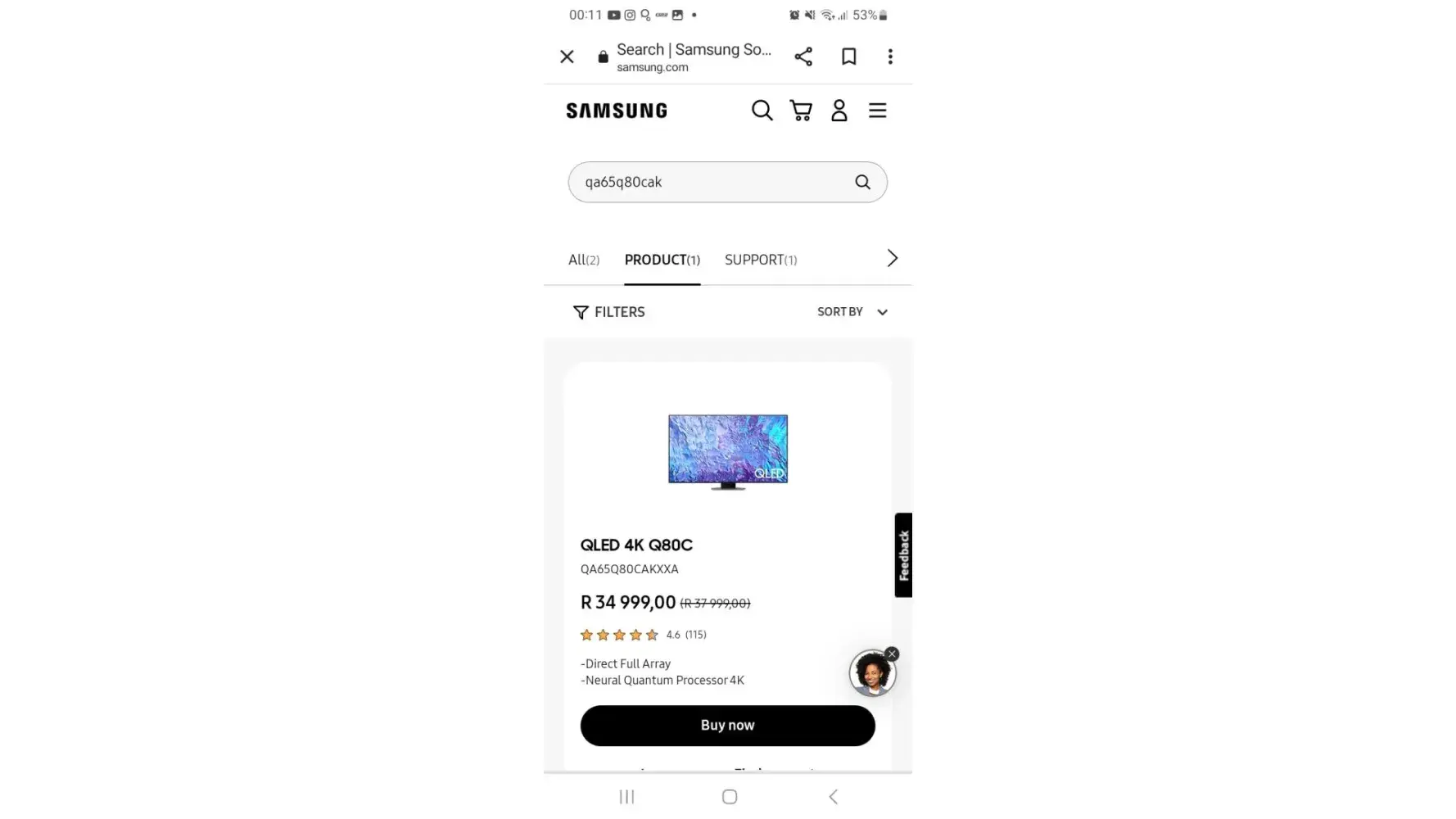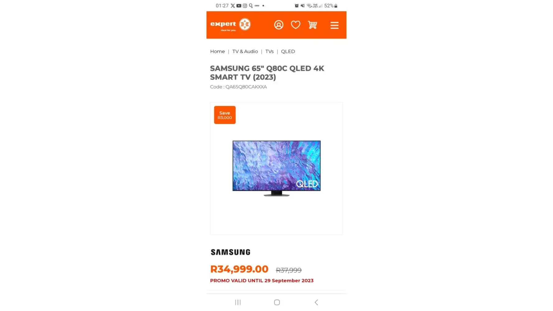 On the 13th of September my daughter threw remote at tv by mistake during tennis game on the tv. The remote servers as controller for games. Model: Samsung 65q90t currently retailing for R42000 online. Outsourced electronics company contracted by OUTsurance as assessor came to collect the unit in the same week on Friday. Monday I called to make follow-up a...
