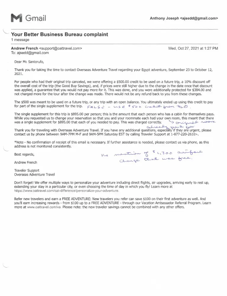 14 Overseas Adventure Travel Complaints