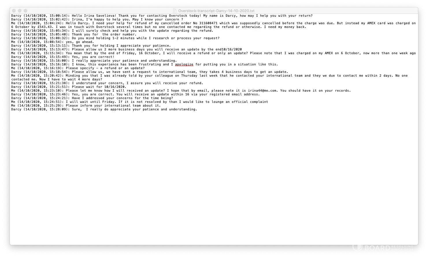 Overstock lack of response & professional service