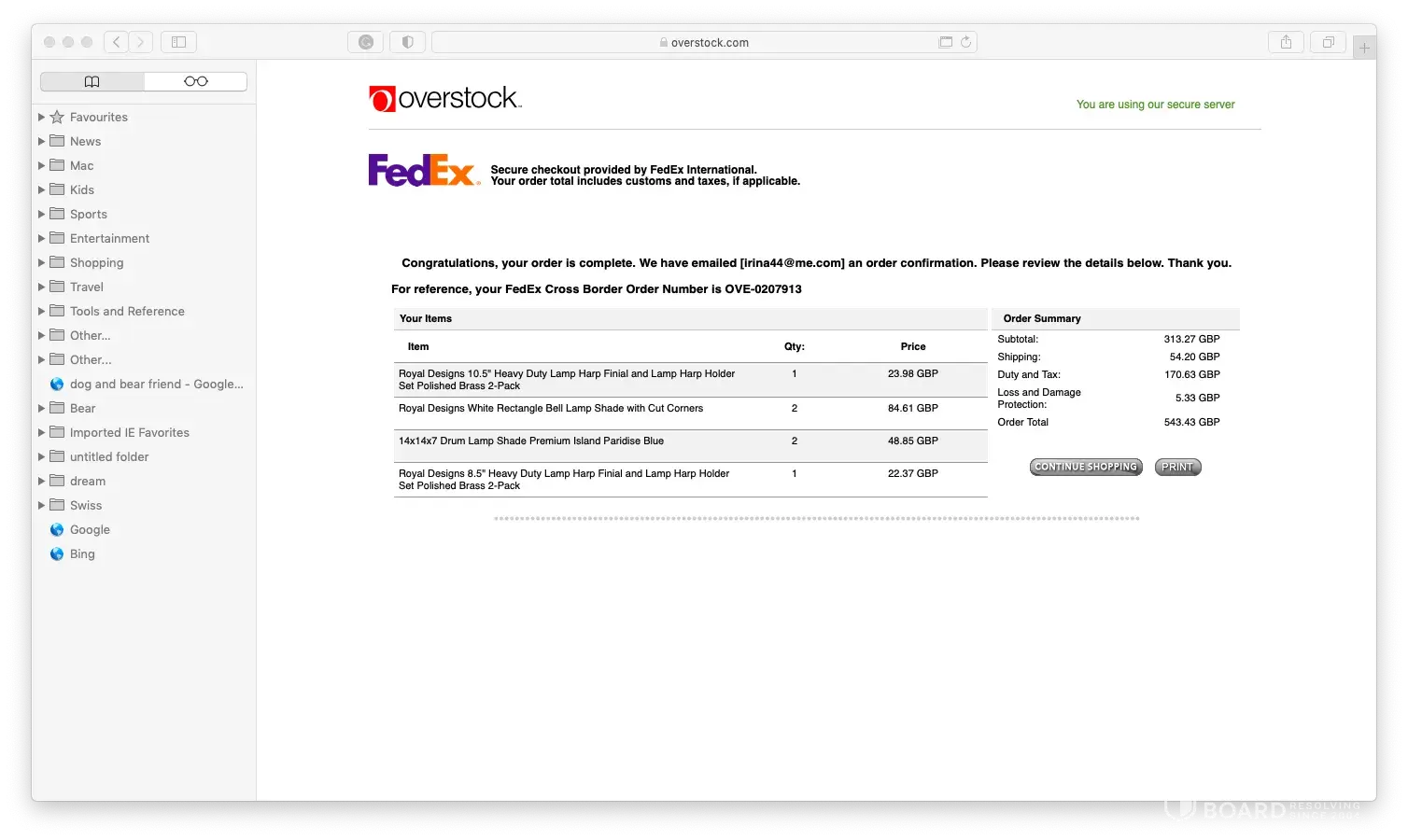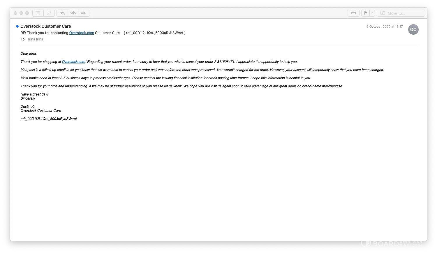 Overstock Order # 33629XXXX