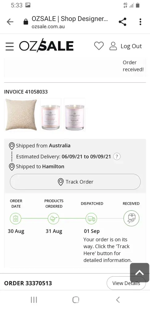 I Purchased 3 items under order number [protected], which was confirmed by email from ozsale on 20/08/21 totaling $579.80