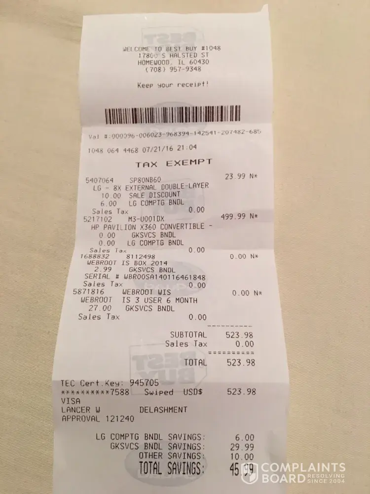 I purchased a brand new HP Pavilion X360 Convertible Laptop (Model: W2L17UA SKU:5217102 Serial: 8CG6222KGV from Best Buy Store #1048 in Homewood, IL on 07/21/2016 with the belief that I had purchased a quality product from a reputable company. Boy, was I mistaken! In 30 days (conveniently past the 15 day Best Buy return policy), I am back in Best Buy at the Geek Squad customer service desk submitting my brand new laptop for shipment to HP for repair. The new laptop's touchscreen is flashing and selecting things on the screen that are not imputed. In other words, my laptop is Haunted! It is opening and closing software applications on its own, opening the Internet and going to websites by itself and preventing me from logging out. Geek Squad couldn't tell me if it was a hardware or a software issue and they couldn't replace my laptop with a brand new one in the store because it was past their 15 day return policy. Not only was I upset, that I couldn't walk out the store with a new laptop due to this return policy, now all my productivity was held hostage for the next two weeks as I scrambled to reschedule meetings with local and out-of-town clients. The inconvenience of purchasing a faulty product plus the personal cost of time rescheduling meetings and loss of productivity is unacceptable when the problem is clearly a manufacturing issue. Is this what I can expect for choosing HP over all the other companies that I could have purchased a laptop from? Not only am I upset at myself for trusting HP, I am angry and upset at being told that all the loss of my time, money and productivity was due to the touchscreen firmware not having the latest software update. I paid over $500 for a substandard product which ended up costing me a whole lot more in time, money and productivity which I can never get back. Not only is my confidence shaken with HP products, you can be assured of two things: (1) I will not take the chance of ordering another laptop, desktop or printer for myself or my business from HP, and (2) I will make every effort to publish my complaint on social media sites if this is ignored and not resolved. I am not only asking for a monetary refund of $524, I am asking for a new laptop. A simple thank you for choosing Geek Squad is not enough. Even as I am typing this complaint, this laptop is malfunctioning once again with the same issue. This is strike number 2. I will be returning this laptop again for repair. Based on the 2 weeks it took to not correct the original problem, plus the anticipated 2 weeks to try to resolve it again, we now share joint-custody of this laptop. My name is Lancer Delashment and I can be reached at [protected].