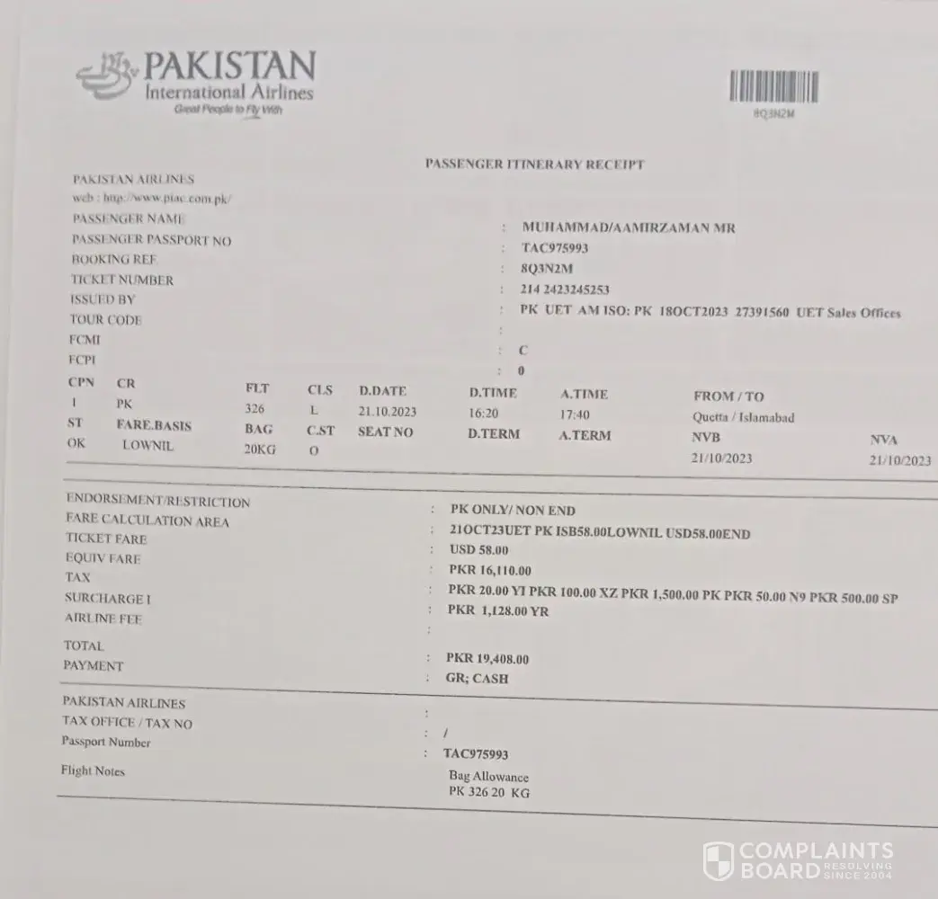 I have booked my flight on 21 Oct 23 but it got canceled and now pia is not paying back the money and answering that they have lack of funds that's why they cant pay back the money now.so disappointed with this behaviour of Pakistan national flight.