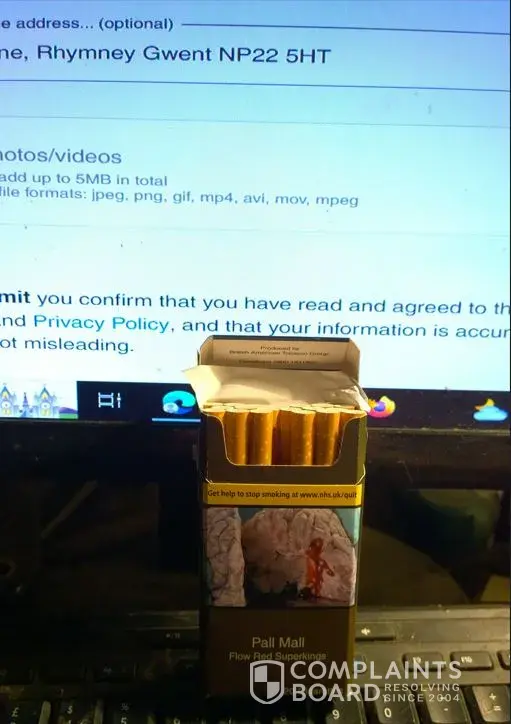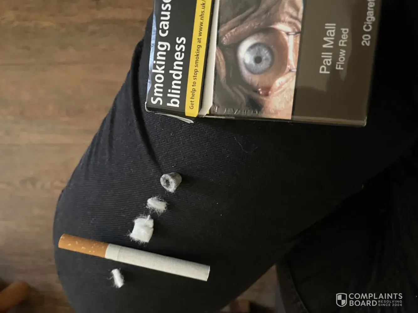 Ian really not happy with the 20 pall mall cigarettes I bought in a uk shop to find that when one was broken there was a lot of black stuff in the filter now I know there’s never been black stuff in filters of cigarettes purchased before iam appalled that such a thing could happen I also called to make a complaint and I got put through to customer service when told I would be put through to complaints I then called again and got told I’ll be put through to the complaints department to yet again be put on hold and then hung up on the is terrible customer service and iam still unable to put a complaint in I will go online viral with all pictures and phone calls to show how terrible your company is unless I get some response many thanks