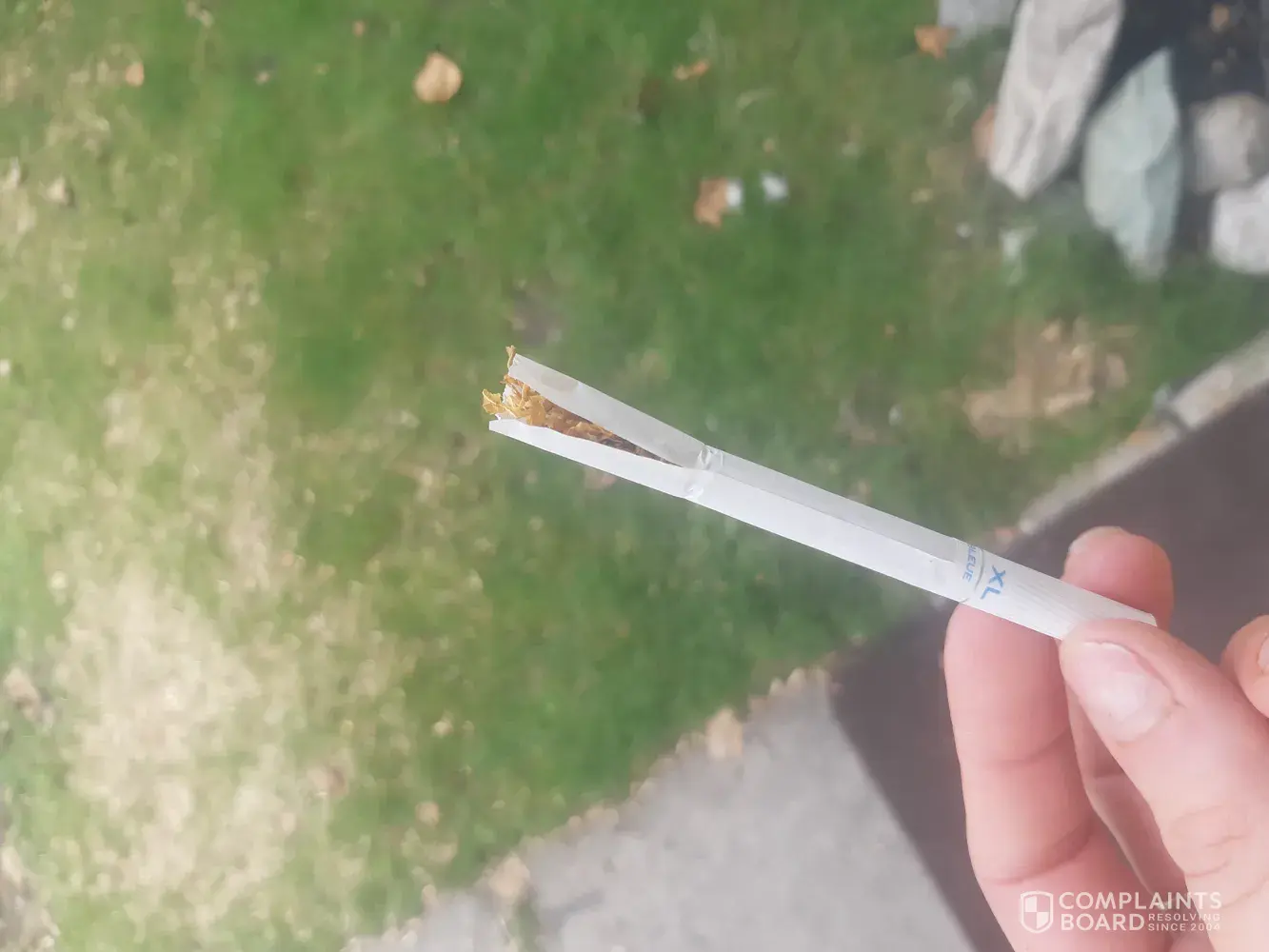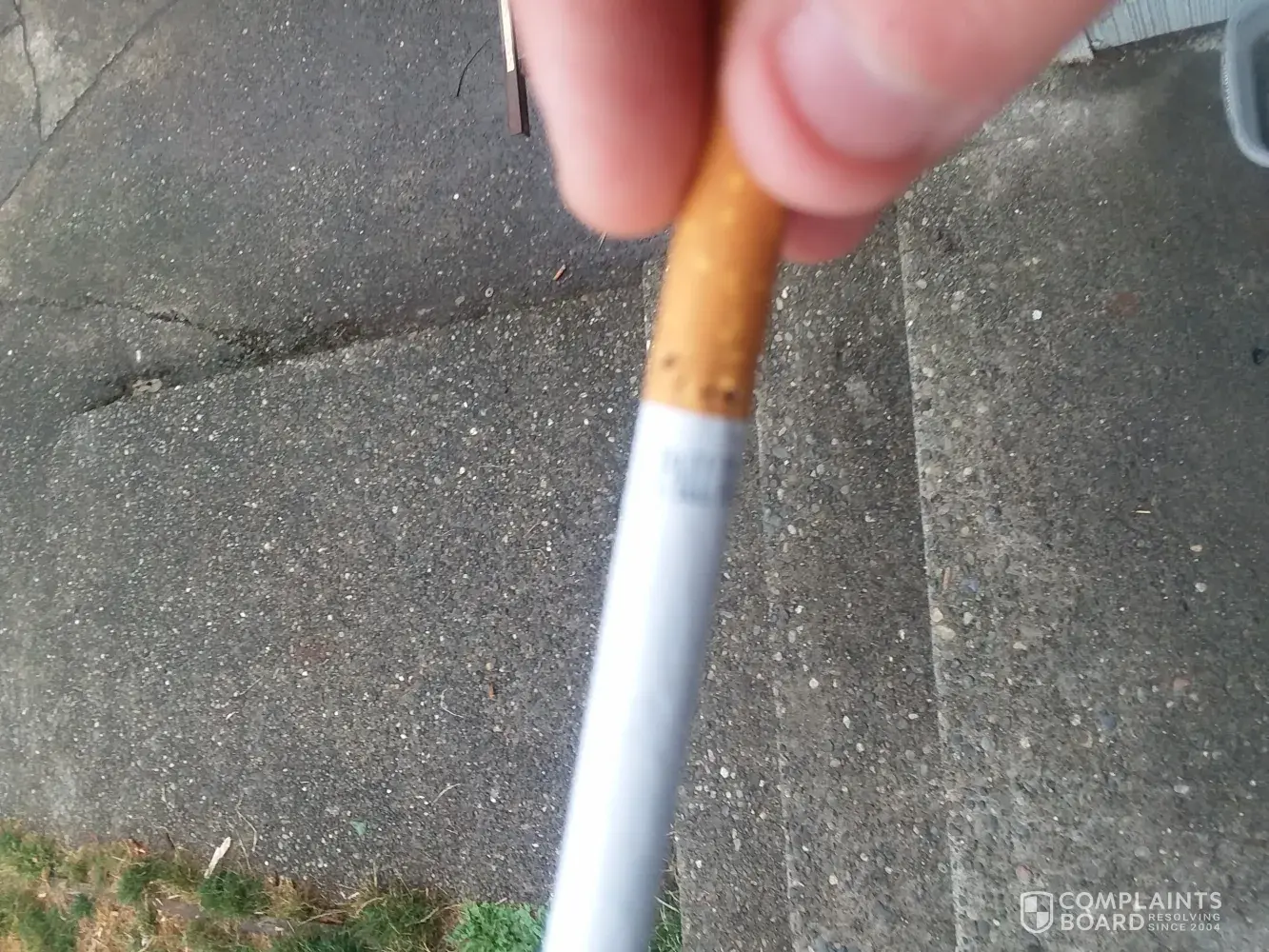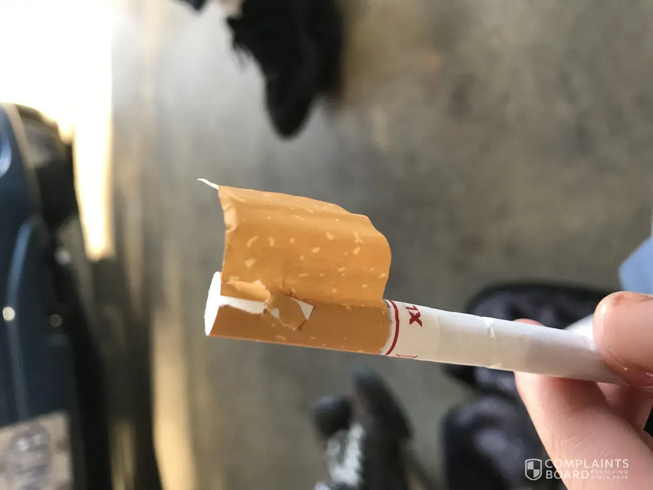 When I came across a cigarette which appears to have blood on the paper. This is not acceptable and I am extremely concerned about what I could of consumed. This could have been from anything such as a human or animal. Please can I have more information regarding this or I'll take this further.