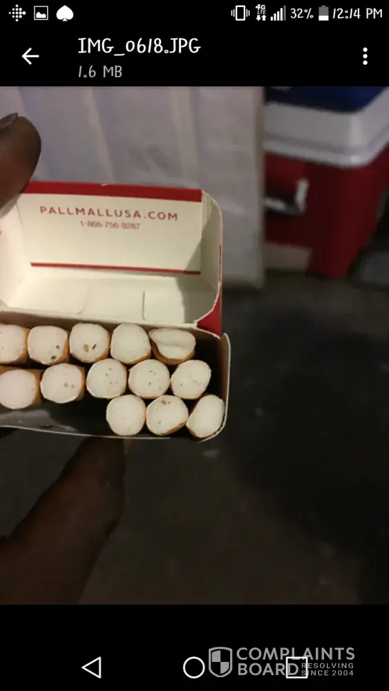 I am a paying customer of Pall Mall for a few years now. I bought a pack of Pall Mall red 100 cigarettes from a Local Quik Trip here in Tulsa, Ok and when I opened pack there was no foil like paper over top of cigarettes. It appeared as if the cigarettes were not packed properly when being made. I only had 19 cigarettes as the back right corner was packed full of tobacco but no cigarette. Along the way I found 4 broken cigarettes that were snapped at the filter making unsmokable. I lost a total of 5 cigarettes out of 20. Cigarettes are already very expensive here in Tulsa at 7-$9 a pack and only 3/4 of a pack of cigarettes. Thanks [protected]@gmail.com