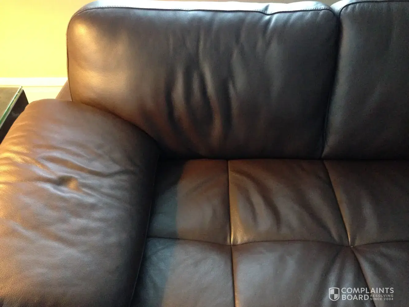 With sitting in a hole with wrinkled leather on the seats when you got up. I again complained to the Furniture Gallery
