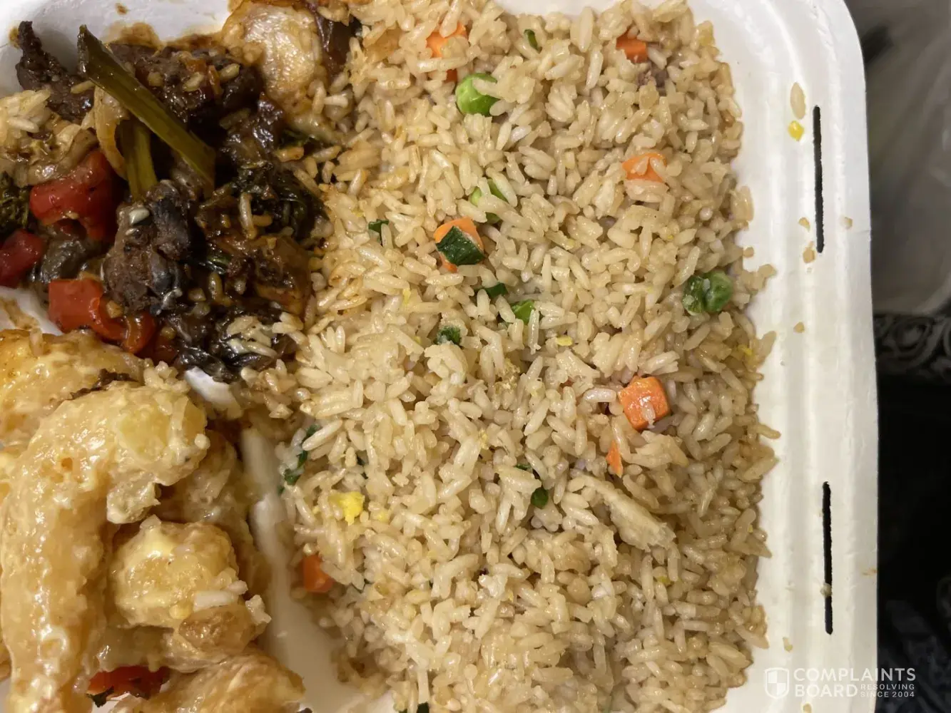 My order was not good — fried rice and serving of broccoli beef.