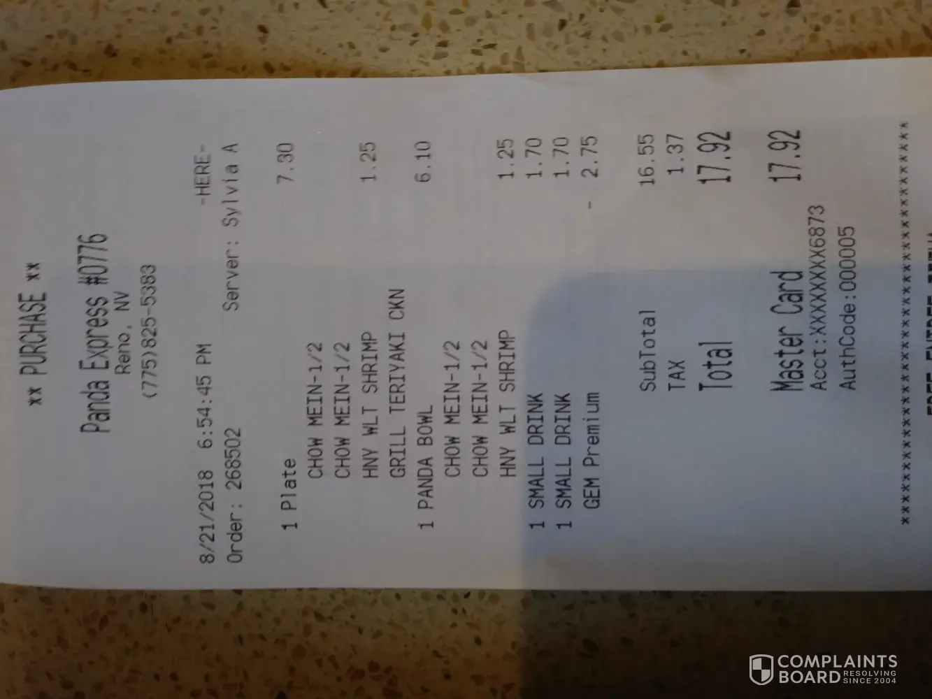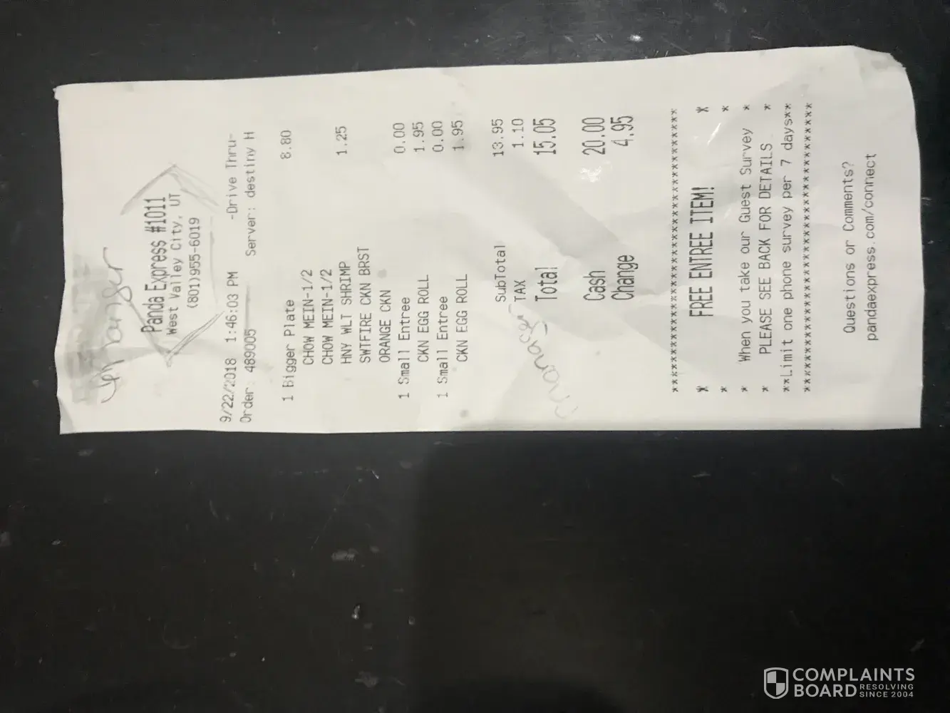 I came to Panda on Kietzke On in Reno, store #0776 for lunch two days ago and did the survey on the back of the receipt. It gave me a code to use for a free entree with purchase of a 2 item entree plate. I came back to the same store tonight for dinner with a friend. I ordered the 1-item bowl and she ordered the 2-item plate and 2 drinks. We still had to pay $17.92. How is that a free entree? My bowl should've been free according to the coupon/code displayed on the back of the receipt. I asked the cashier and she got upset and frustrated because she said she took it off already but clearly she didn't. The manager came over and she too did not seem to be understanding what My issue was. My entree was $6.90, my friends was $7.30. That should've taken off the $6.90 but all she took off was $2.75. I will not be returning to Panda after this experience since you're not going to honor the coupon on the back of the receipt as its stated.