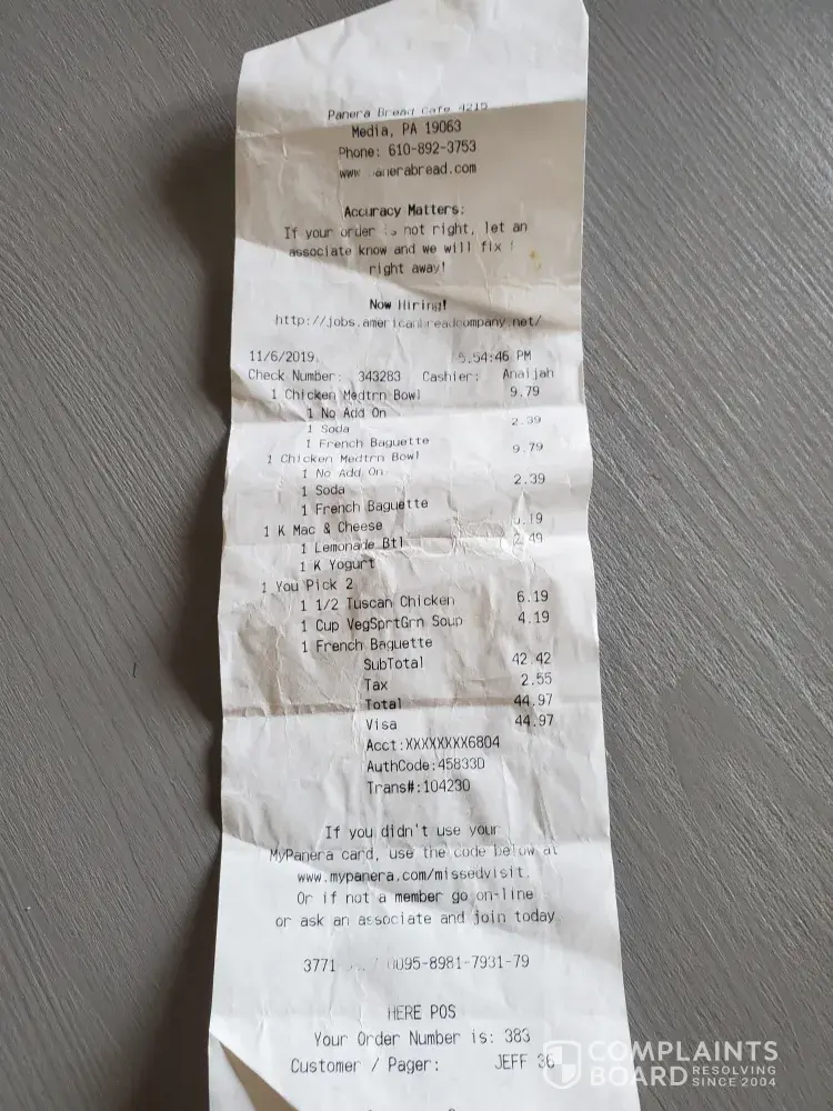 Read full complaintcheck # 343283 ($44.97, 11/6/19, 5:54:46 pm